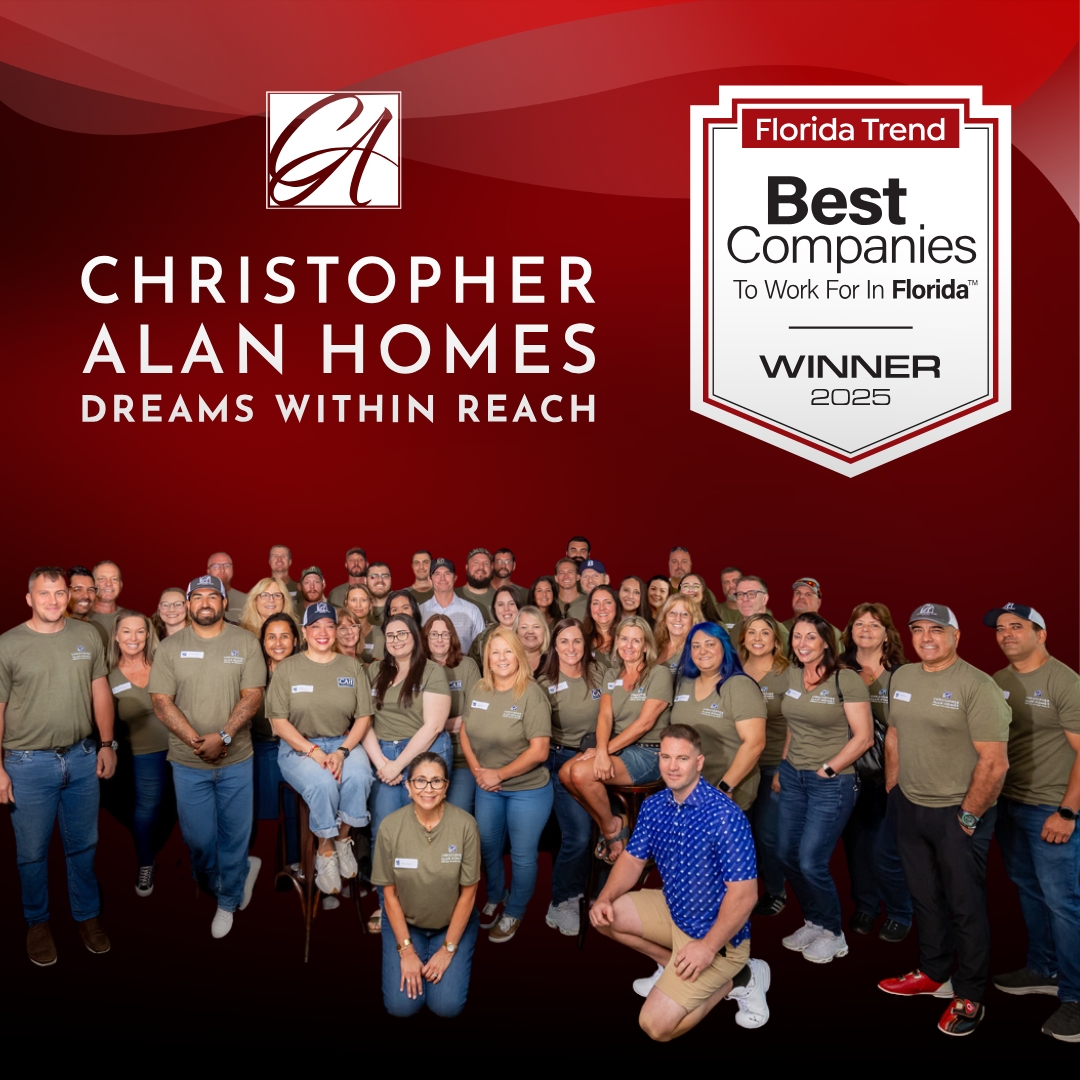 Founded in 2017, Christopher Alan Homes is a nationally ranked private homebuilder and your trusted “Hometown Florida Builder.” Our mission is simple: deliver exceptional value through innovative design, quality craftsmanship, and customer-first service. Our growth reflects an unwavering commitment to our core values — Building Better, Creating Opportunities, and Fulfilling Dreams. We believe a home is more than four walls — it’s where life happens. That’s why every Christopher Alan home is thoughtfully designed, expertly built, and backed by a team that lives and works in the same communities we serve.