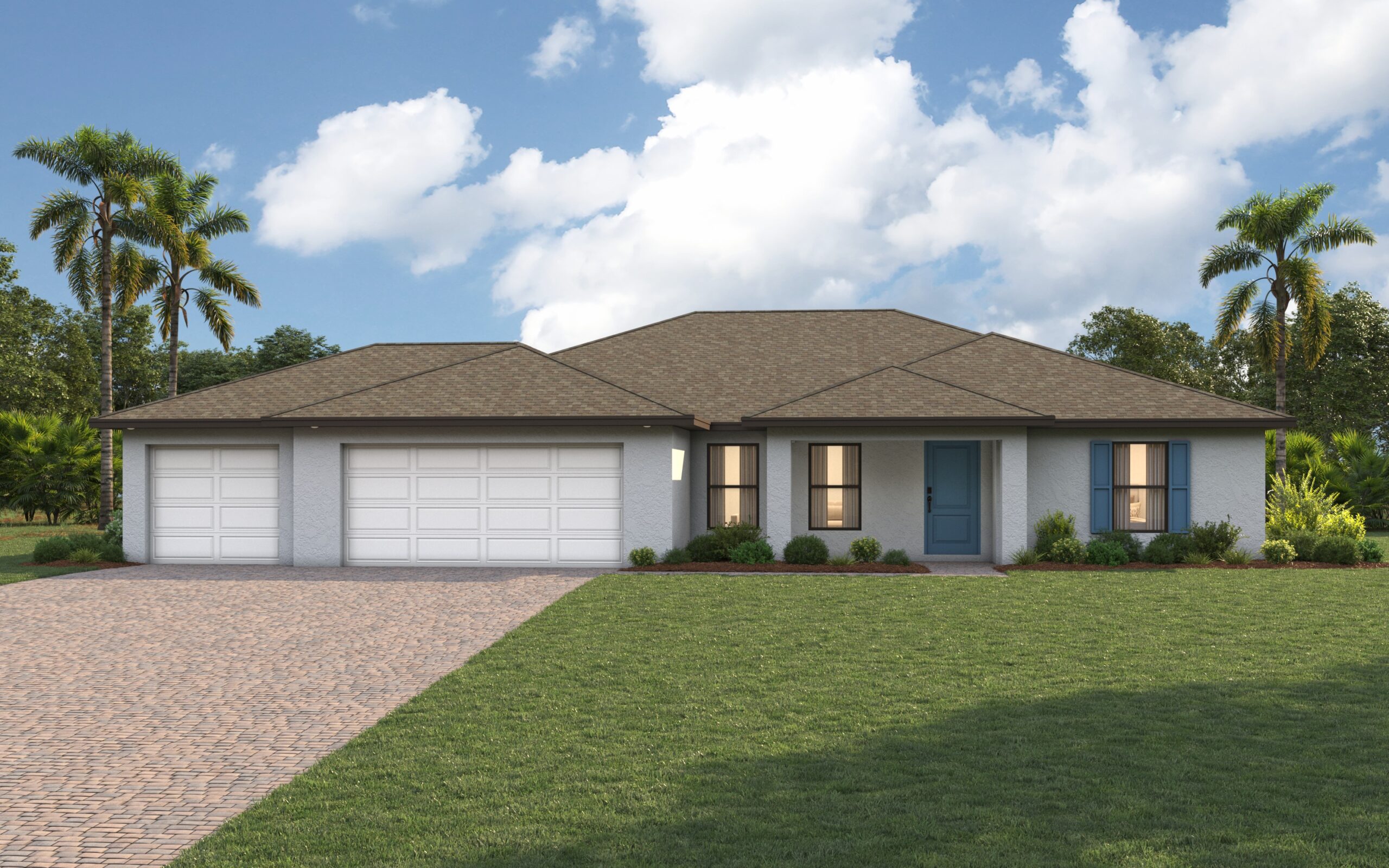 The St. Augustine blends elegant design with everyday functionality, offering the perfect balance of indoor comfort and outdoor living. A welcoming covered front porch leads into the heart of the home, where an open-concept layout with a vaulted ceiling creates a sense of spaciousness and flow. The dining area with double windows, gourmet kitchen with a freestanding island and pantry, and expansive Great Room with sliding glass doors all work together to maximize natural light and create an inviting atmosphere. Step outside to the large covered lanai—ideal for relaxing or entertaining. The private Primary Suite is a true retreat, featuring two generous walk-in closets and an en-suite bathroom with a dual sink vanity, a tiled walk-in shower, and a large linen closet for added convenience. On the opposite side of the home, three additional bedrooms provide flexibility for family, guests, or the perfect home office. Additional features include: Quartz countertops in kitchen and baths, Shaker-style cabinetry with soft-close doors, stainless steel kitchen appliance package, upgraded plank tile flooring in main living areas, hurricane-impact windows and doors, paver driveway and covered entry, and a spacious attached 3-car garage with direct access to laundry room.