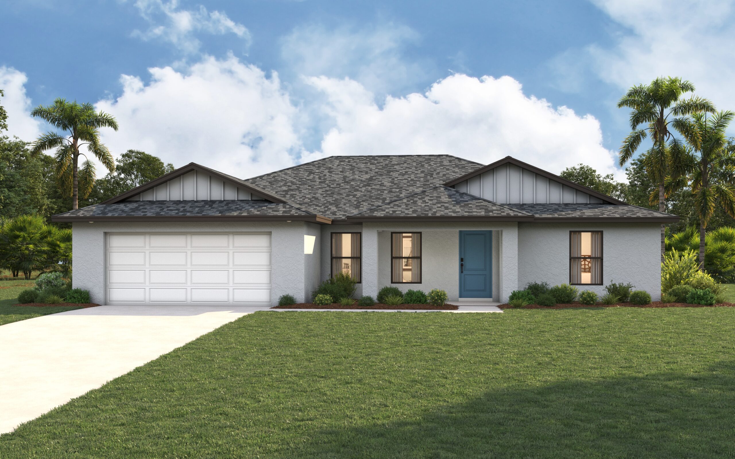 Additional features include:  Quartz countertops in kitchen and baths, Shaker-style cabinetry with soft-close doors, stainless steel kitchen appliance package, upgraded plank tile flooring in main living areas, hurricane-impact windows and doors, covered entry, and an attached 2-car garage with direct access to the laundry room.     3-car garage upgrade available on select homesites.