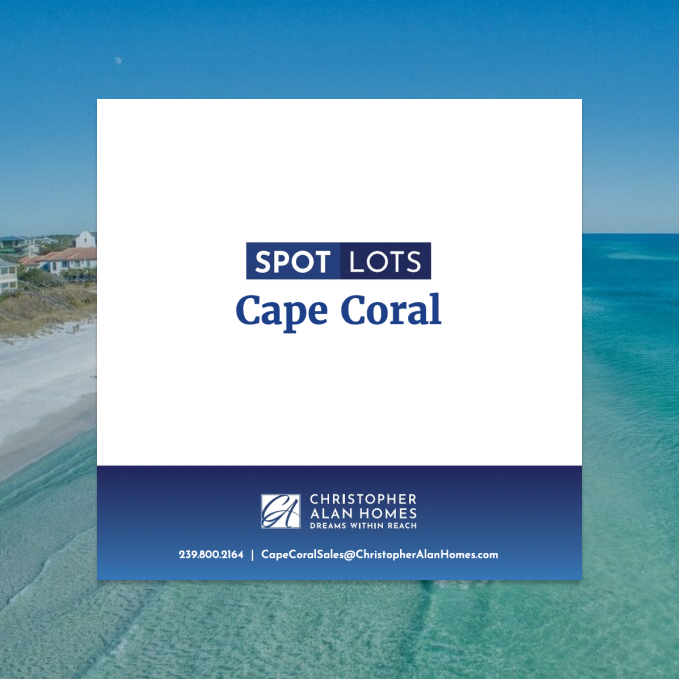 Nestled within a peninsula formed by the Gulf of Mexico and the Caloosahatchee River, Christopher Alan Homes is building new homes on individual “spot lots” in two distinctive Cape Coral areas: